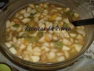 Fiz também uma saladinha de frutas com a ajuda da priminha;
