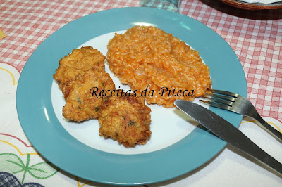 A receita podem ver aqui, mas deixo já o alerta de que a massa não dá para moldar com as mãos, eu tive de usar duas colheres de sopa.